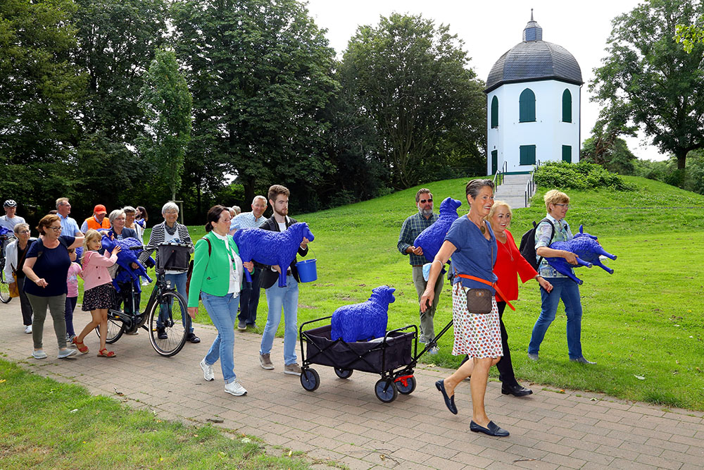 Mit der sogenannten Blauschaf-Aktion hat der Förderverein für das Stadtmarketing Rheinberg e.V. gemeinsam mit Partnern eine weithin sichtbare Kunstaktion in die Stadt geholt. Die blauen Schafe des Aktionskünstlers Rainer Bonk standen dabei im Mittelpunkt. Die Figuren tragen die Botschaft: „Alle sind gleich – jeder ist wichtig.“ und stehen symbolisch für ein friedliches Miteinander, Toleranz und gesellschaftliche Vielfalt. Im Rahmen der Aktion waren die Blauschafe unter anderem im Stadtgebiet, am Hospiz sowie im Bereich der St.-Peter-Kirche präsent.